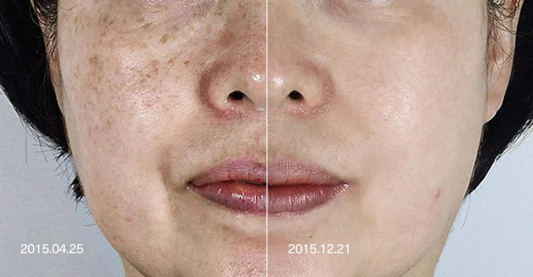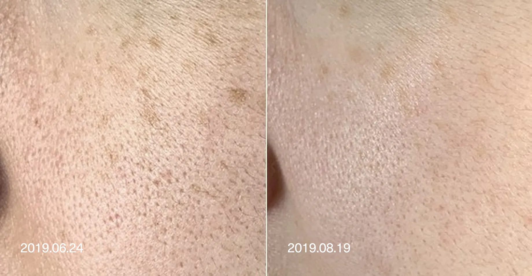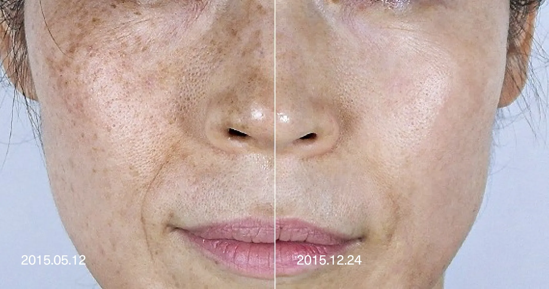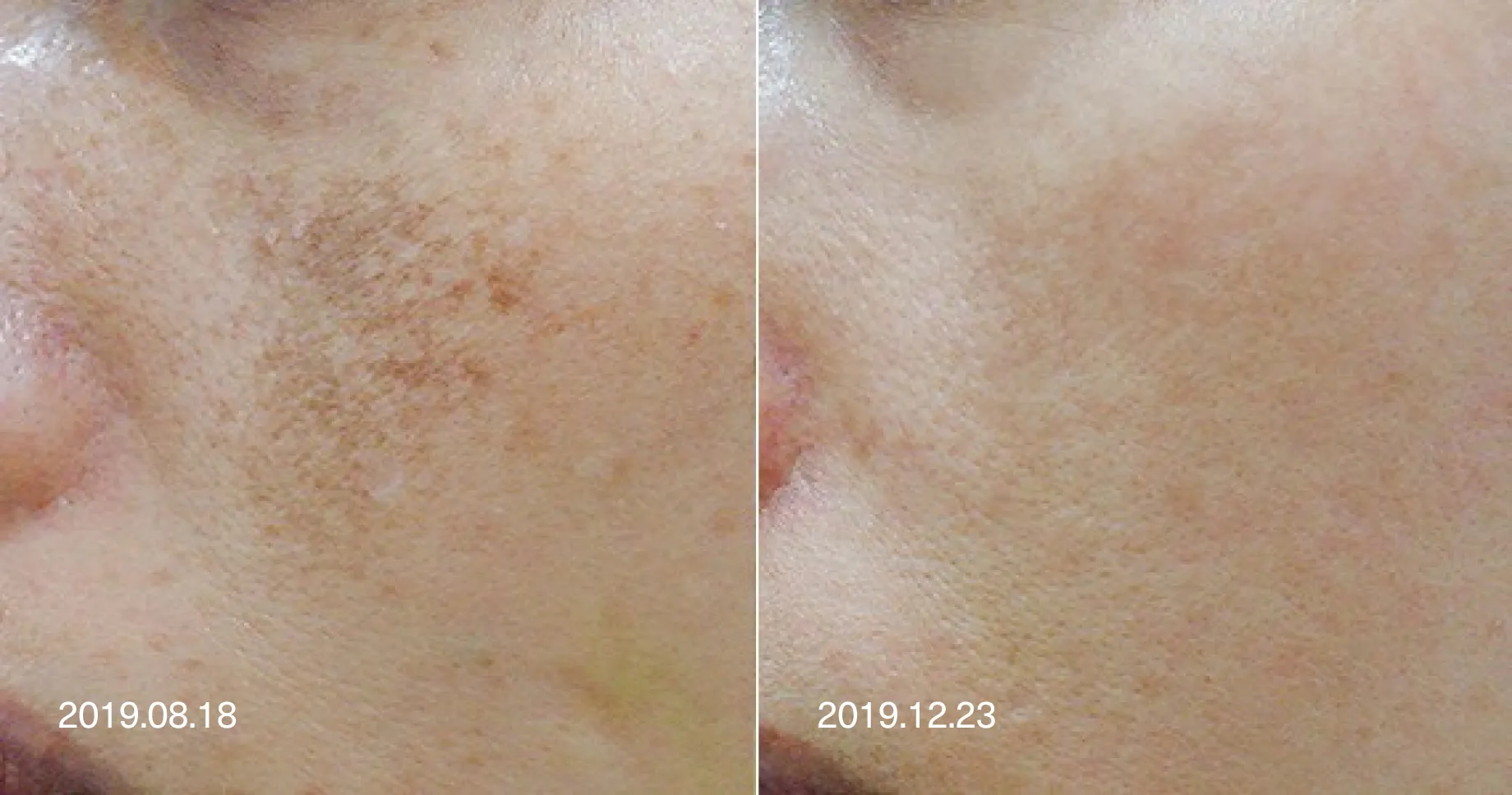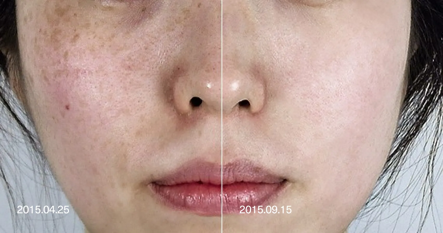 표피층 색소 고민(주근깨, 잡티, 점 등)에는 즉각적인 효과를 보이지만 진피층 색소 고민은 개선효과가 미비.