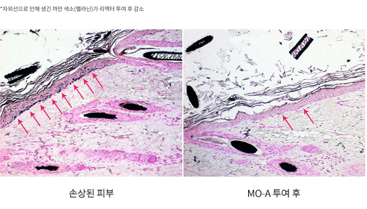 색소 리액터는 레이저 등 다른 시술로 쉽게 지워지지 않는 진피층에 위치한 기미를 효과적으로 제거하며 손상된 피부 본연의 기능을 회복하여 기미의 생합성을 근본적으로 차단하는 시술입니다.