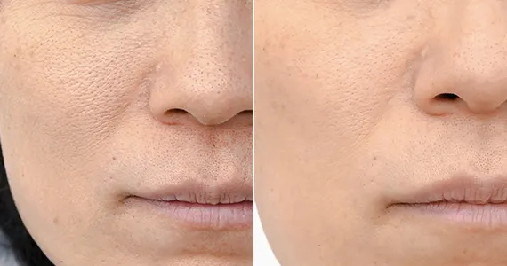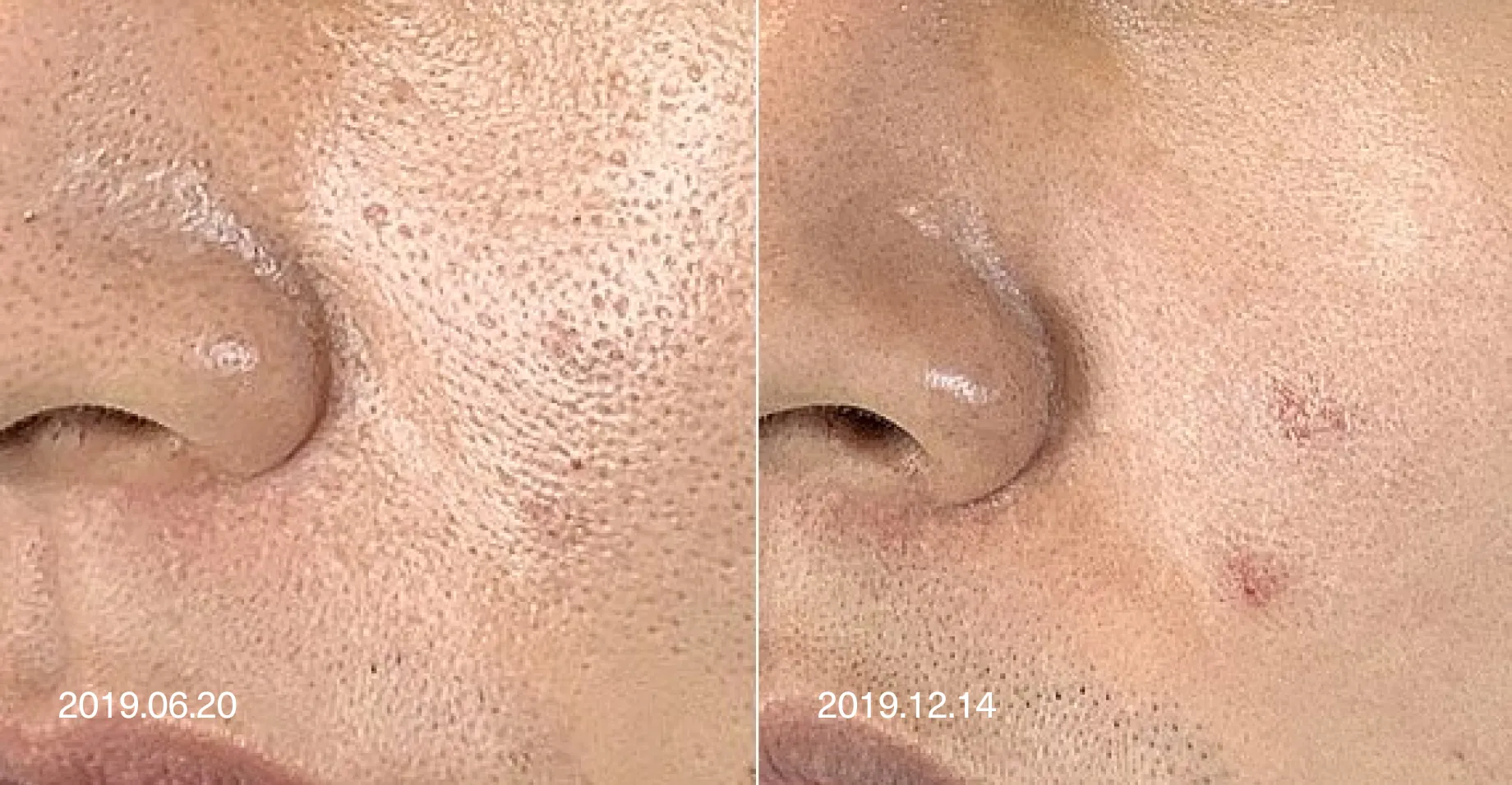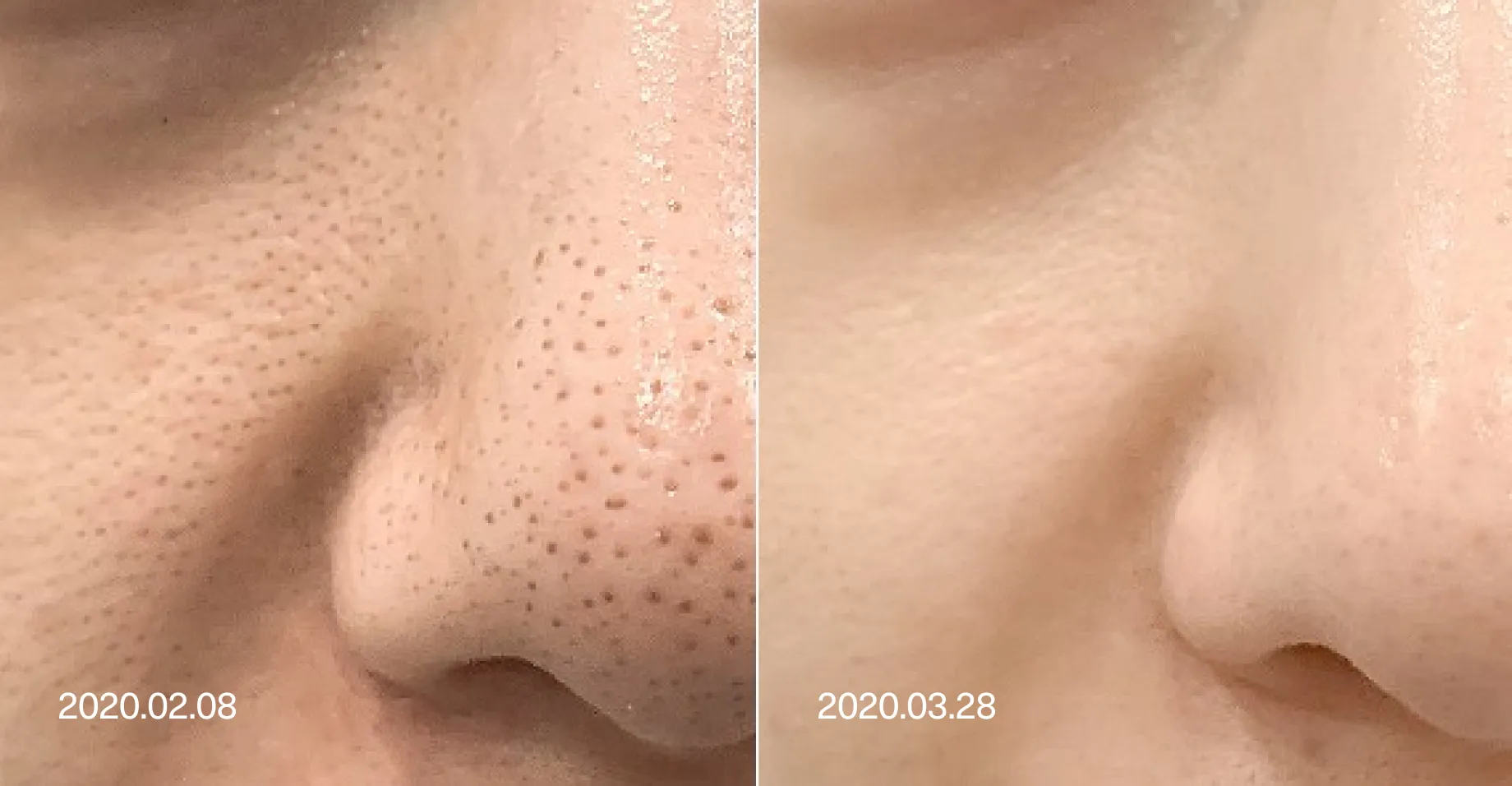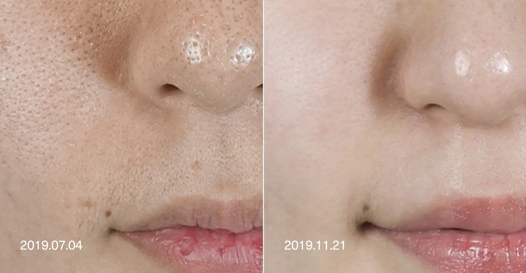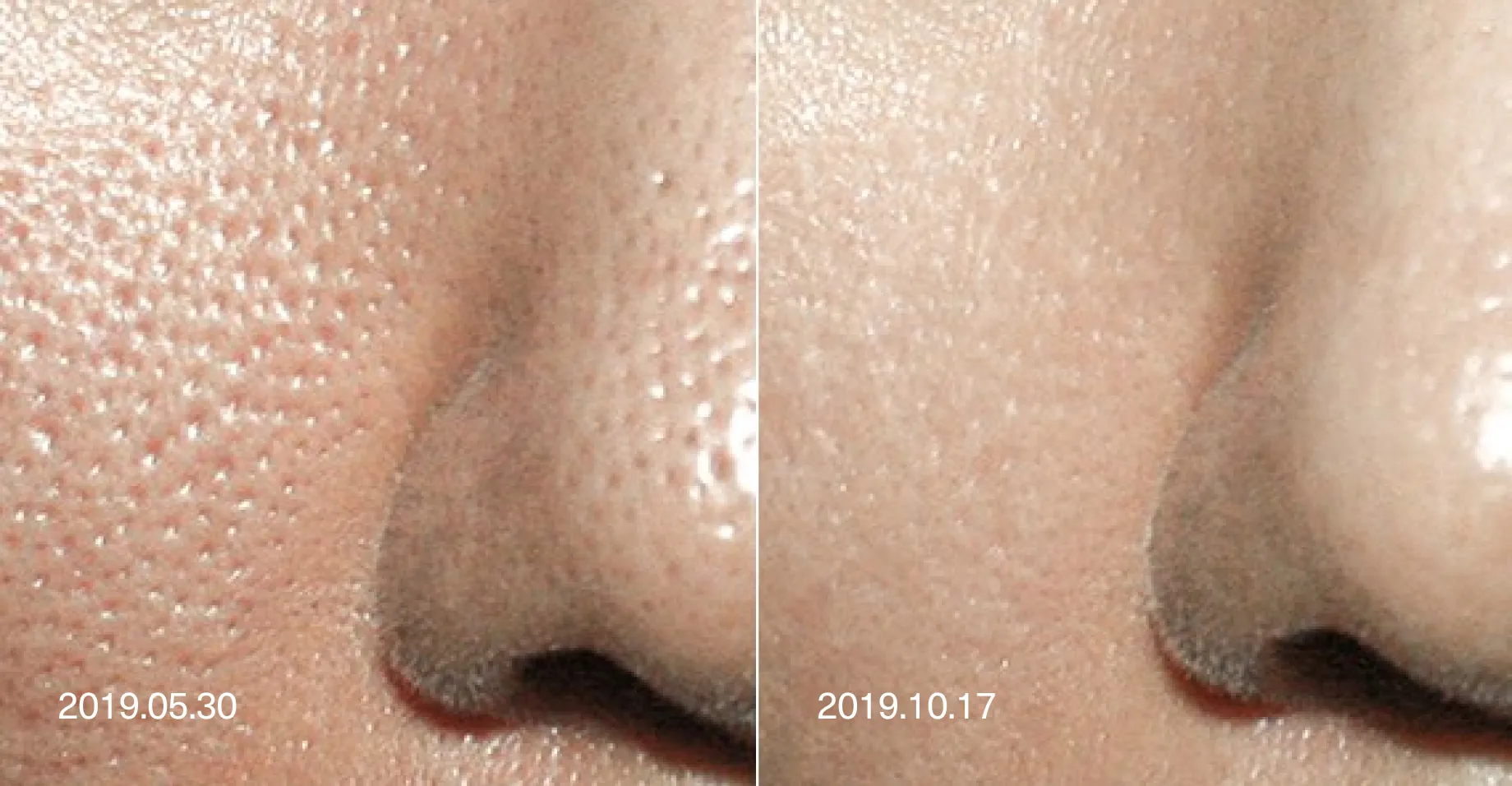 시술 일주일 후부터 각질이 감소해 피부 결이 부드러워지며, 진피에서의 콜라겐 합성으로 모공이 피부