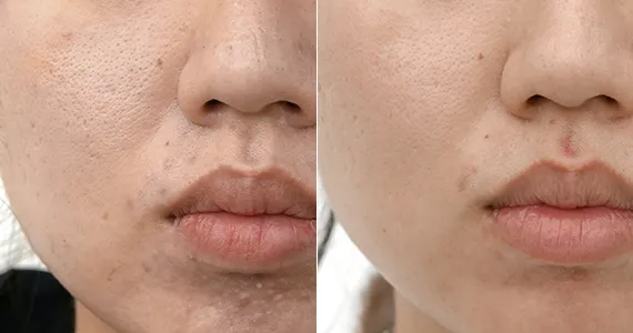 병리적인 피부 상태를 정상적인 피부로 돌려놓기 때문에 반영구적인 효과가 지속됩니다. 시술을 통해 피부가