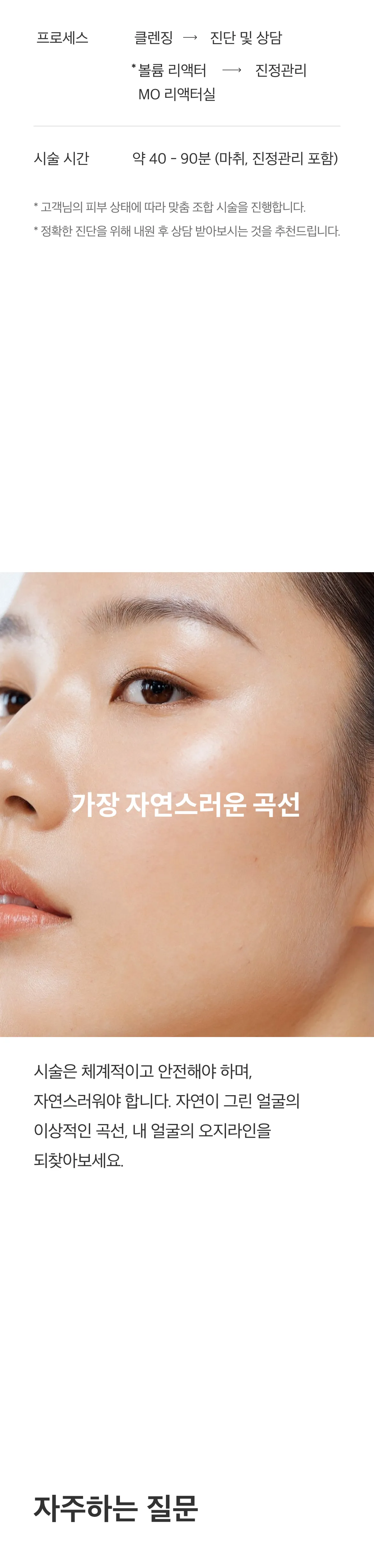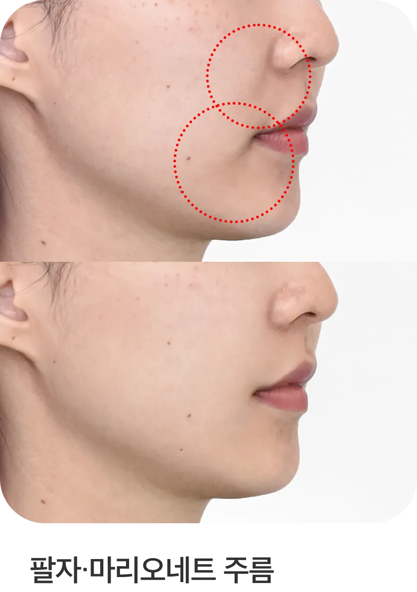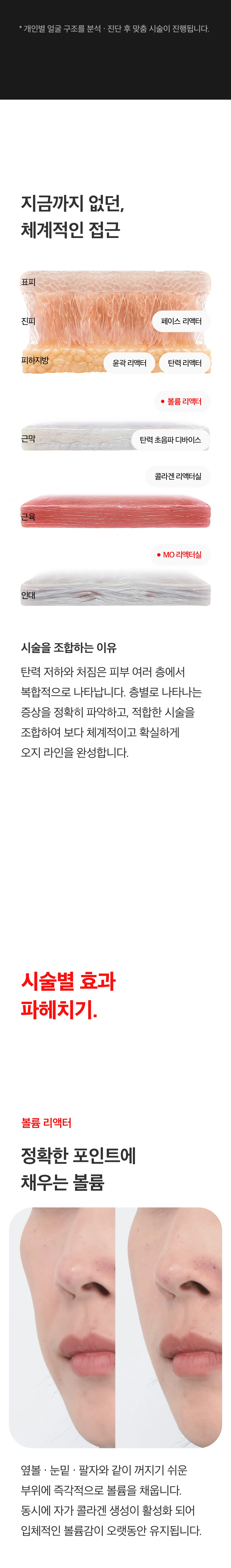 볼륨 리액터 + MO 리액터실 → 얼굴살이 많고 탄력 저하가 고민인 경우 (팔자 등 굵은 주름 개선에도 도움)
