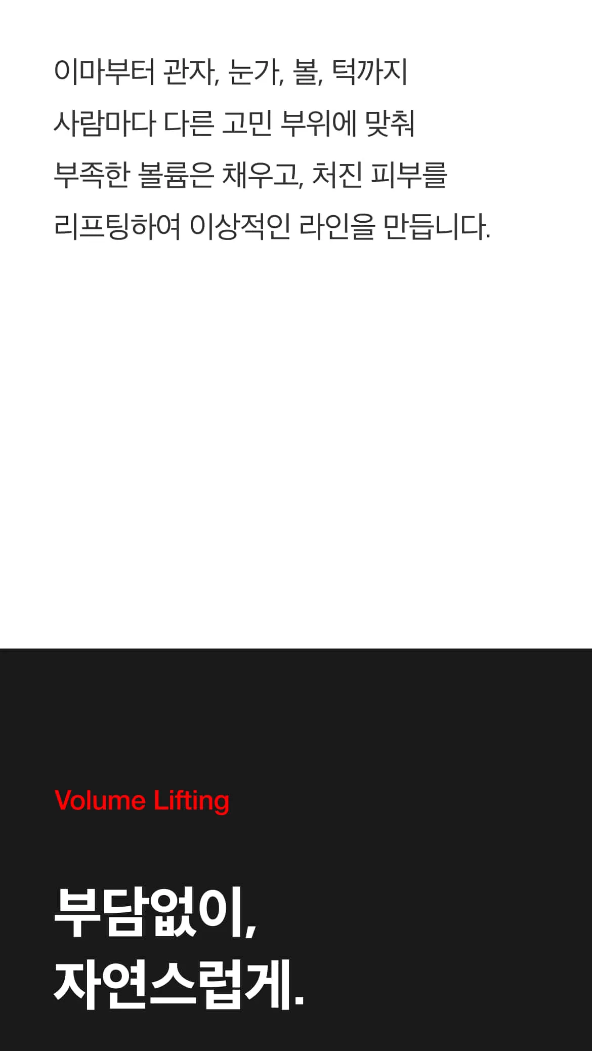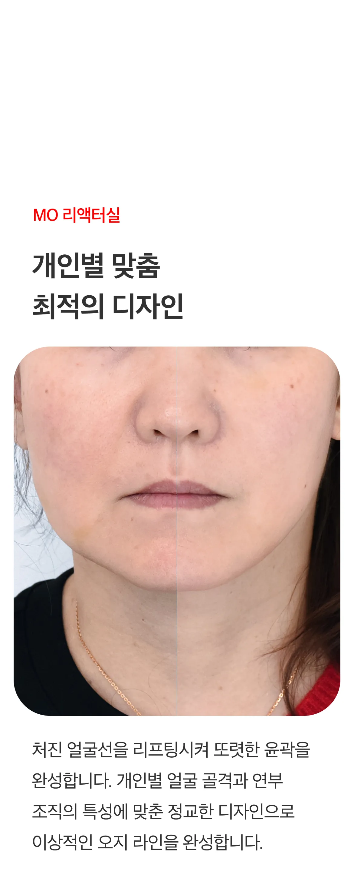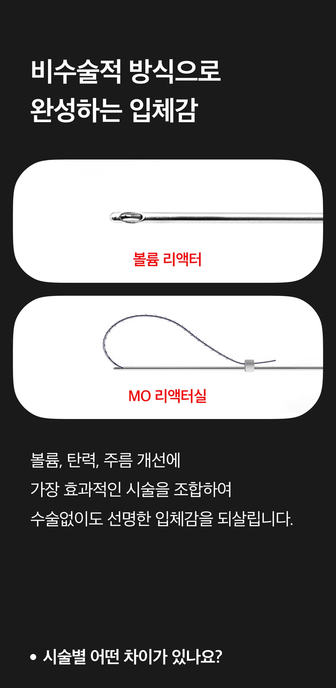 볼륨 리액터 + MO 리액터실 → 얼굴살이 많고 탄력 저하가 고민인 경우 (팔자 등 굵은 주름 개선에도 도움)