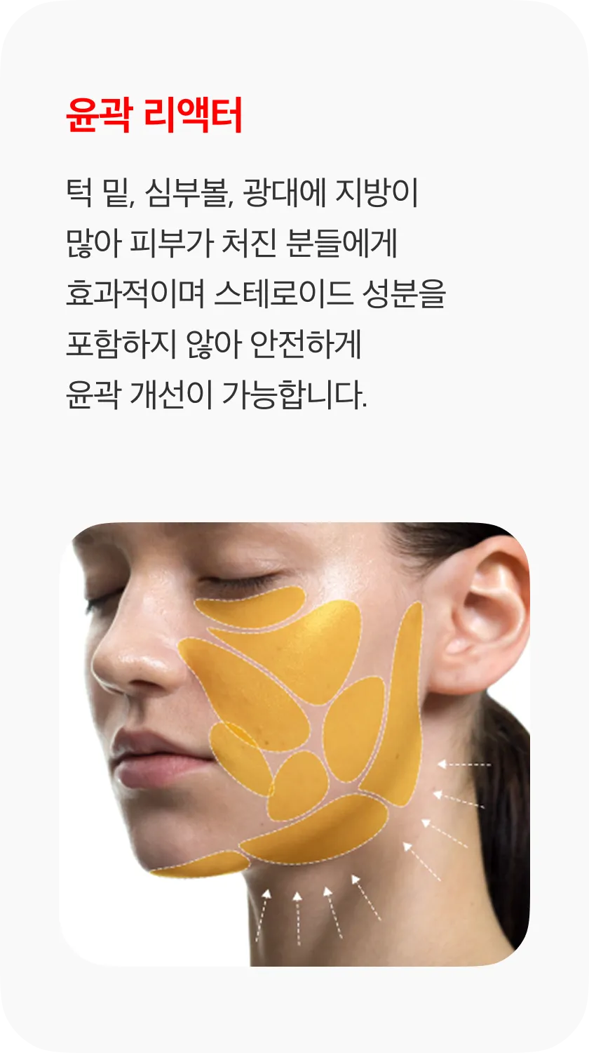 볼륨 리액터 + 탄력 리액터 → 얼굴살이 적고 볼륨이 부족한 경우