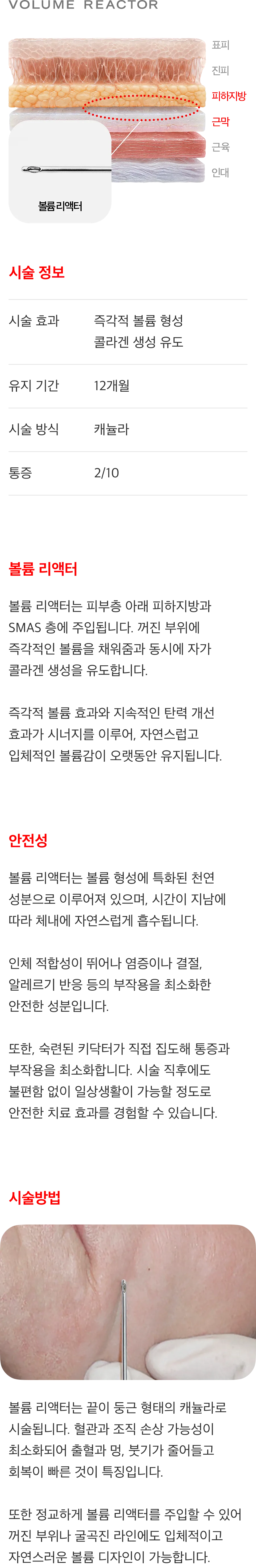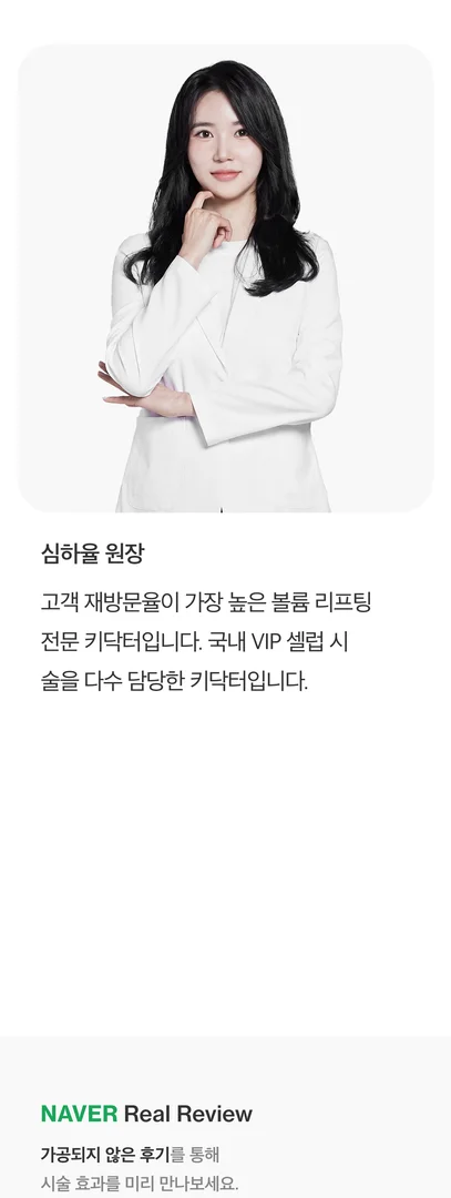 볼륨 리액터 : 시술 후 볼륨 잔존 효과는 평균 1년까지 지속됩니다. 특히, 1~2개월 후 필요한 부위에 보강 시술을 진행할 경우, 더욱 자연스럽고 장기적인 볼륨 유지가 가능합니다.