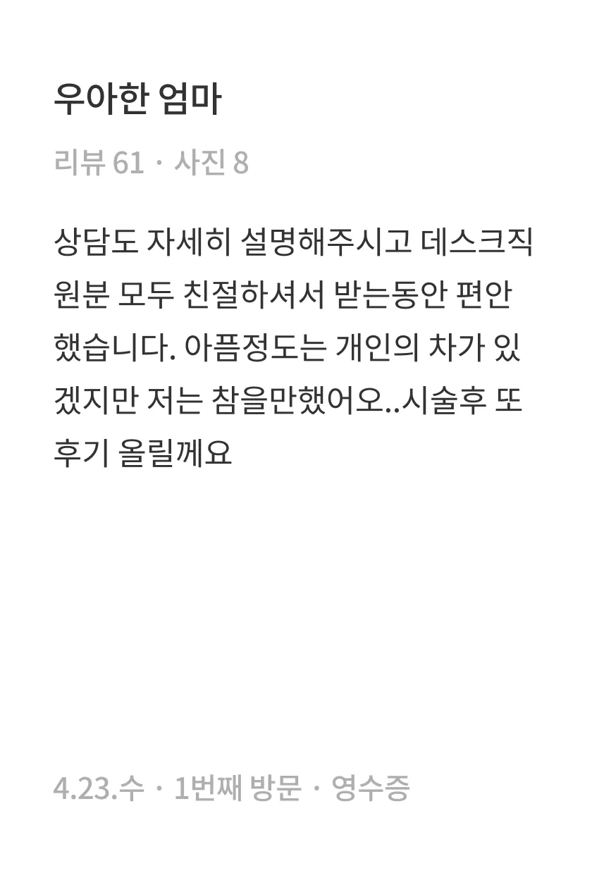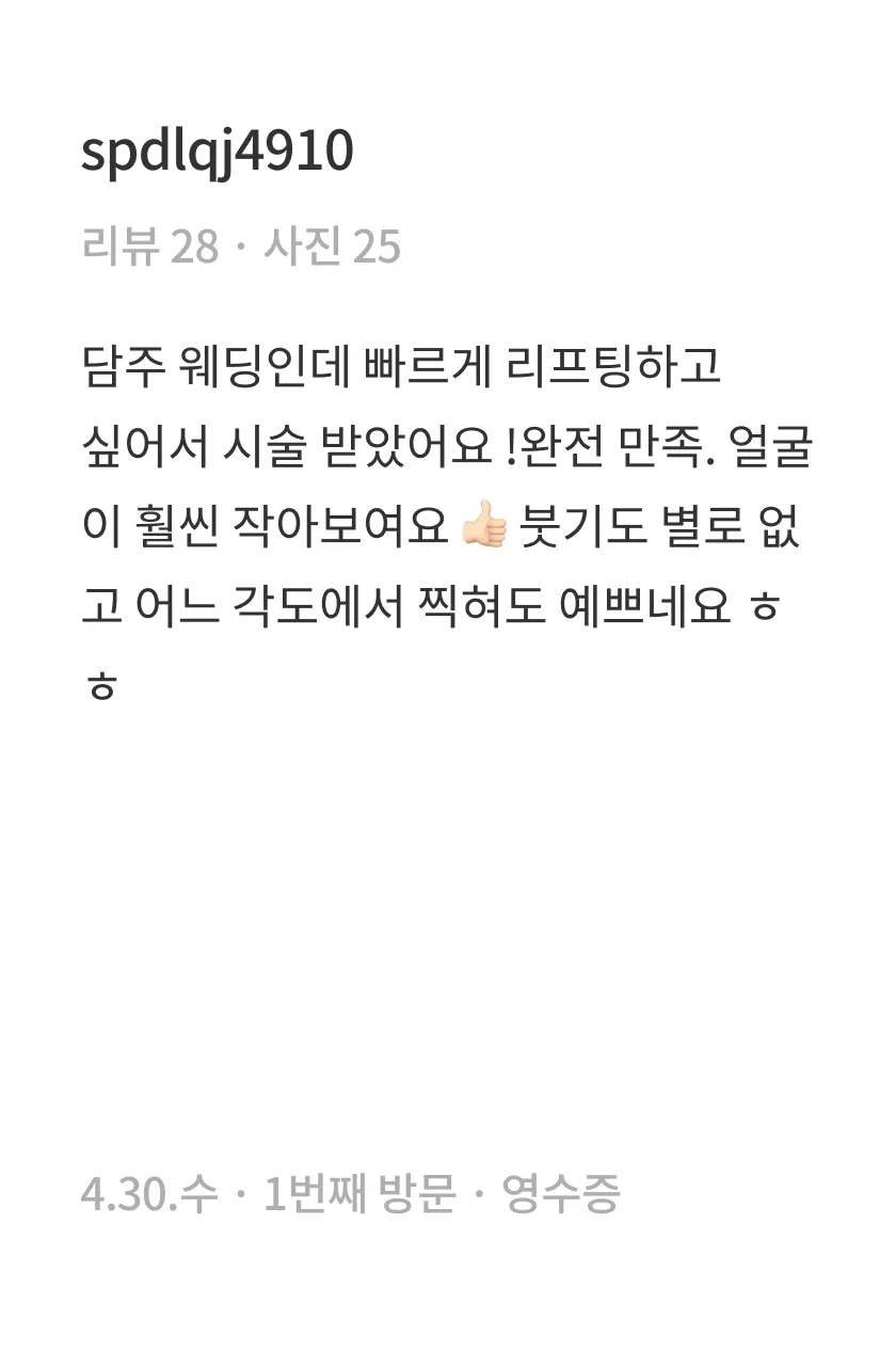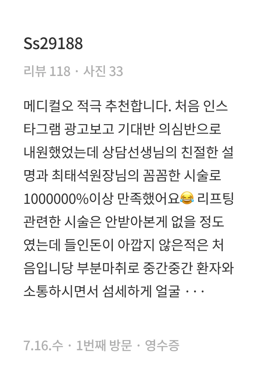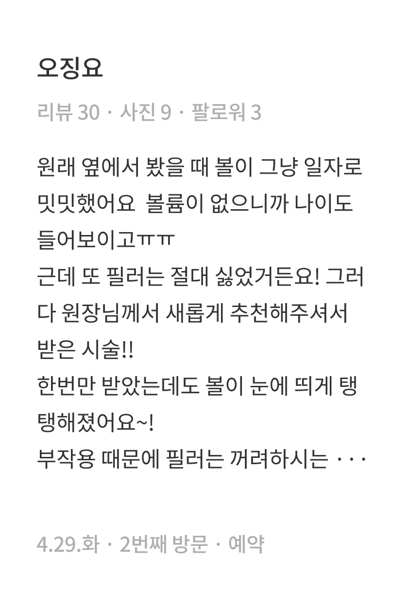시술 후 일주일 정도 마사지, 격한 운동, 사우나를 삼가해주세요.