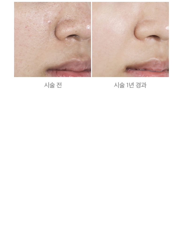 병리적인 피부 상태를 정상적인 피부로 돌려놓기 때문에 그 효과는 반영구적입니다. 시술을 통해 건강한 상태로 회복된 피부는 자극에도 예민하게 반응하지 않으며, 일시적인 문제가 생기더라도 이전보다 빠르게 건강한 상태로 회복됩니다.